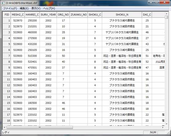「ツール」-「DBFファイル編集」実行すると、DBFエディターが起動され、「メニュー」の「ファイル」-「開く」でDBFファイルを選択し、編集できます。編集が終わってから上書き保存してください。編集が破棄する場合、「ファイル」-「アプリケーションの終了」で「ファイル保存」フォームで「キャンセル」を選択ください。