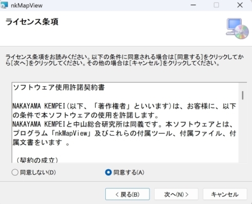 3.ランセンス同意画面で、「同意する」を選択し、次へボタンをクリックして下さい