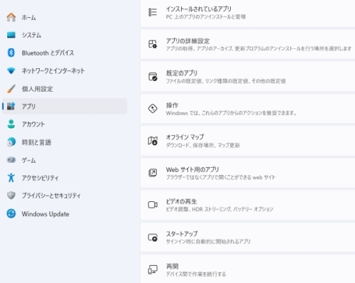 「アプリ」項目から「インストールされたアプリ」一覧から「nkMapView」を選択します。