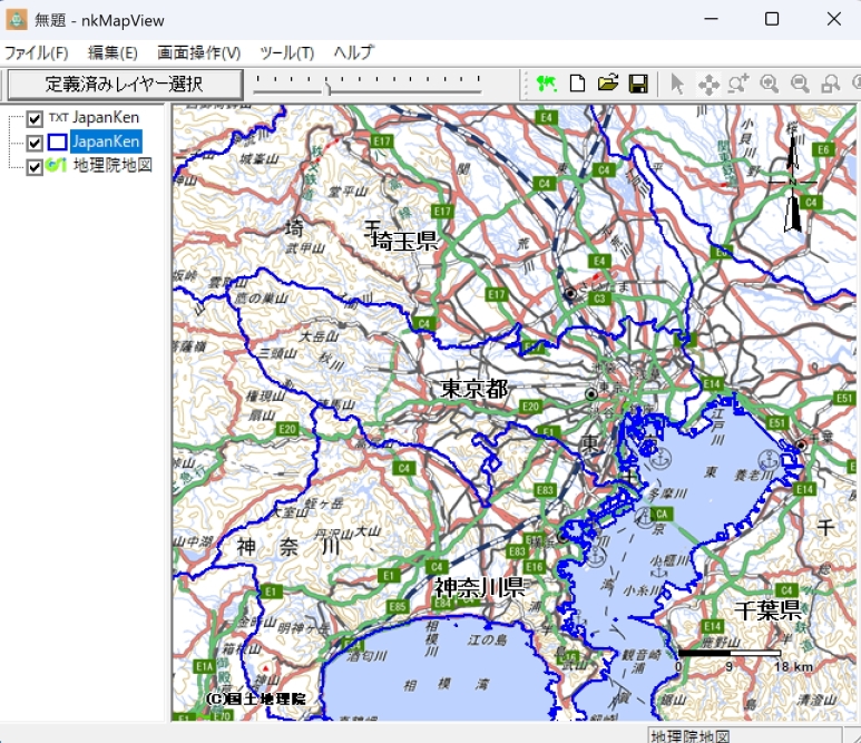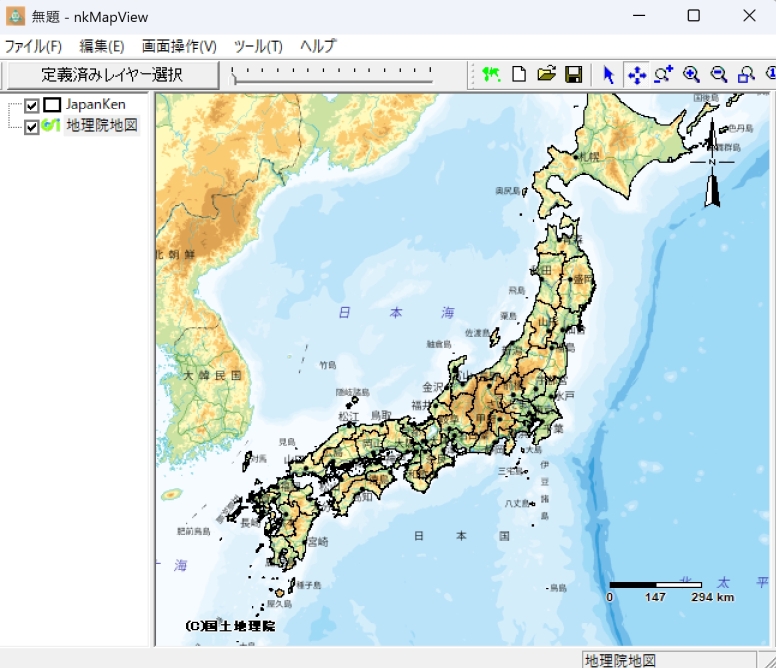 付属のJapanKenファイルを投影変換し、地理院地図マップに表示する操作を示します。