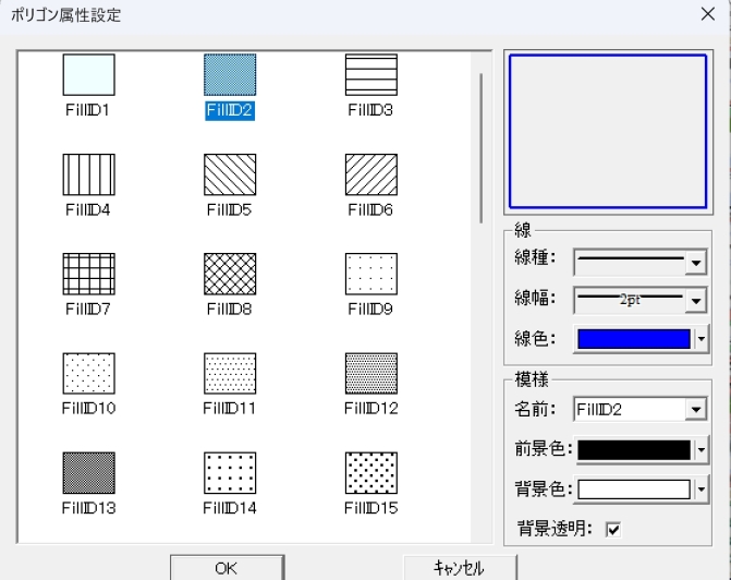 マウスの左ボタンでマップ左側のレイヤーリストから「JapanKen」を選択し、マウスの右ボタンでクリックし、メニューリストから「レイヤースタイル変更」を選択します。「ポリゴン属性」の線幅2ptを指定し、線色を青色にを指定し、マップ画面にJapanKenのスタイルが変更されます。
